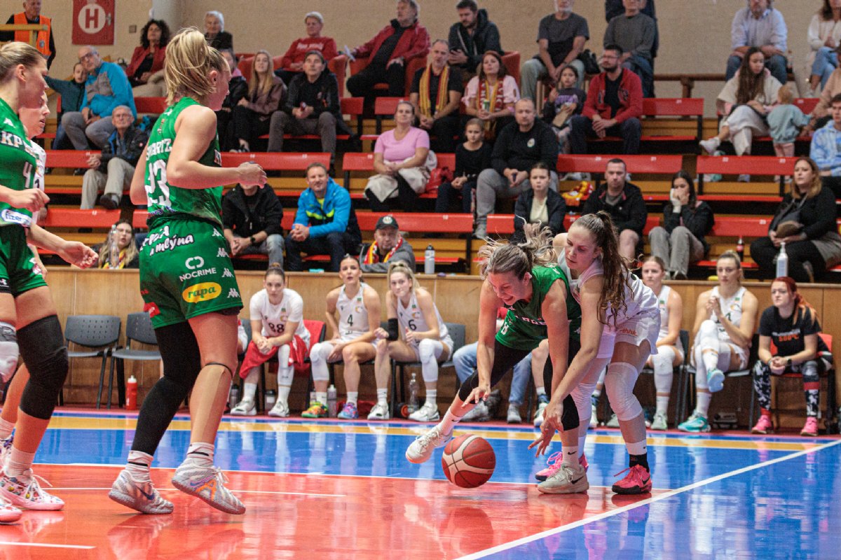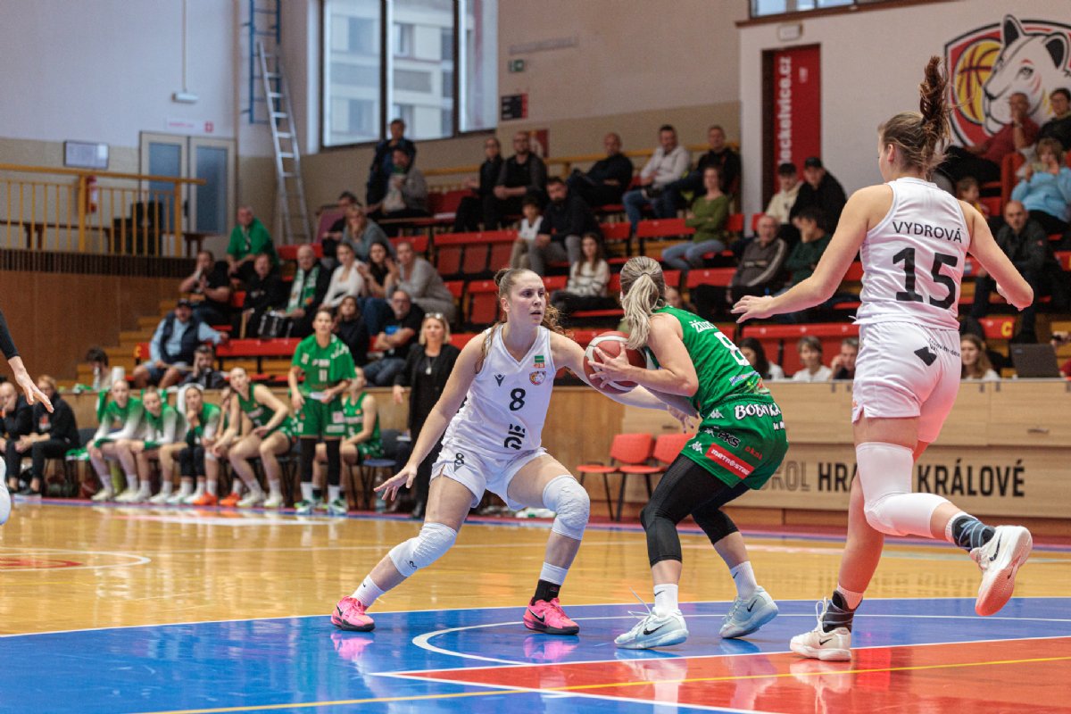 Lvice začaly výborně a v první čtvrtině určovaly tempo. Hradecký tým táhla především slovenská reprezentantka Natália Martišková, která svojí bojovností strhávala své spoluhráčky. KP však ukázalo svou zkušenost a kvalitu a v závěru druhé čtvrtiny se dostalo do vedení, ale poločasový stav 43:45 jasně ukazoval, že utkání zůstává otevřené pro oba týmy.