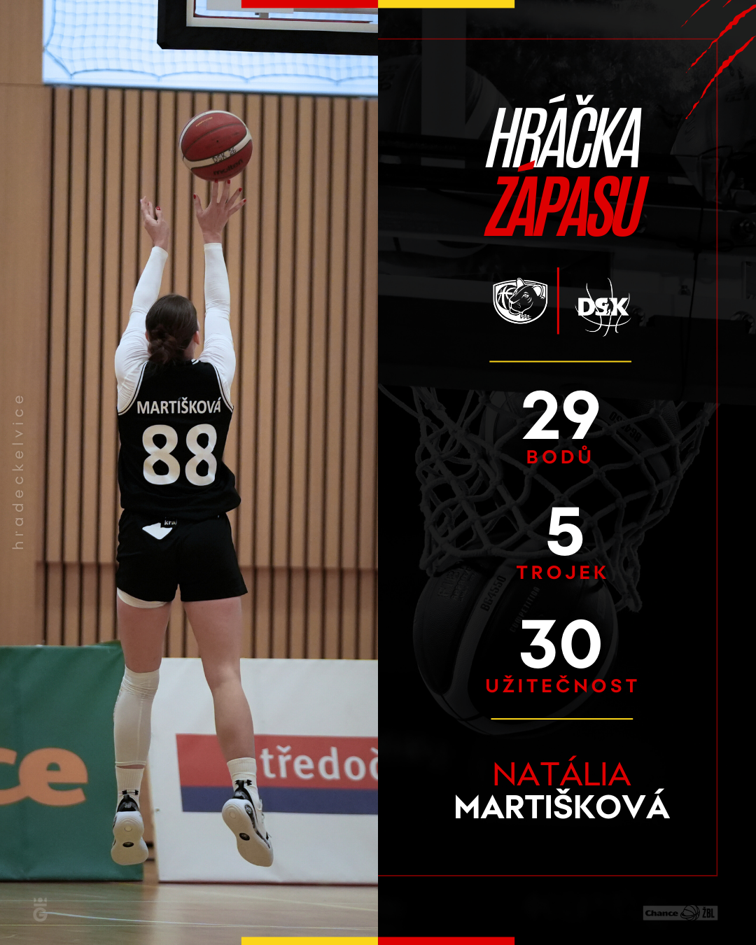 Přesto se lvice nevzdaly. Tři minuty před koncem přišel rozhodující tlak, kdy se díky rychlým sedmi bodům podařilo stáhnout skóre na 69:67 a zápas se znovu otevřel. Hlavní tahounkou byla fantastická Natália Martišková, která předvedla skvělý individuální výkon, trefila pět tříbodových střel a utkání zakončila s 29 body.