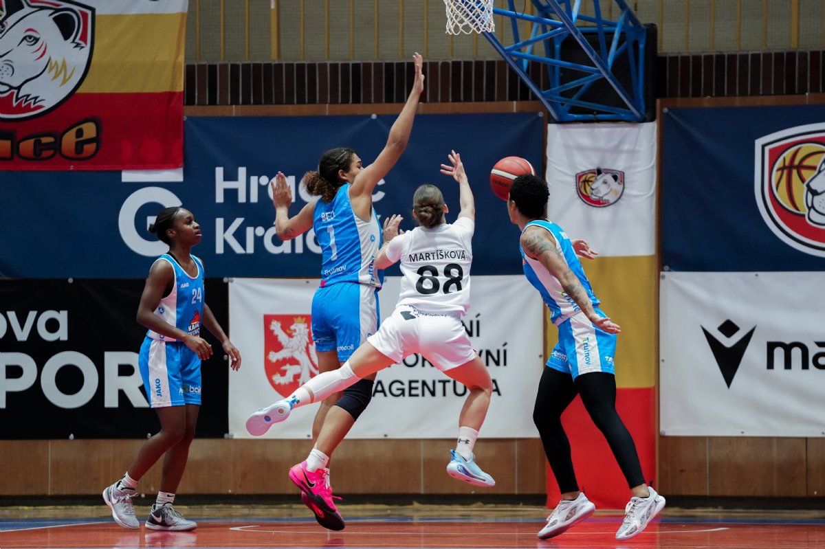Ovšem do poslední čtvrtiny nastoupily opět lvice z první čtvrtiny, začaly se opět prosazovat z jednoduchých akcí a nakonec dovedly zápas do vítězného konce 74:43. Příležitost dostaly všechny hráčky, což přineslo pozitivní momenty – Tereza Králová si po delší době bodově polepšila a zaznamenala atraktivní alley-oop po skvělé asistenci Natálie Vlachové. Střelecky se blýskla také Julie Vydrová a tým opět táhla nejlepší střelkyně Eliška Hálová.